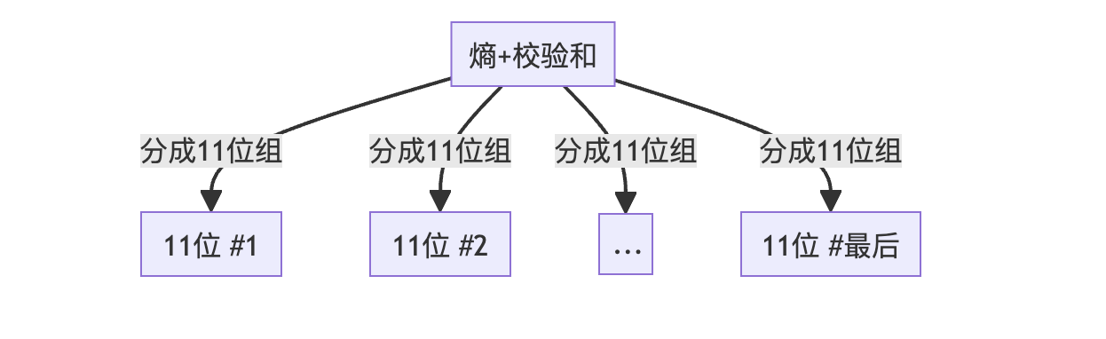 将熵和校验和组合起来,然后分成11位的组: