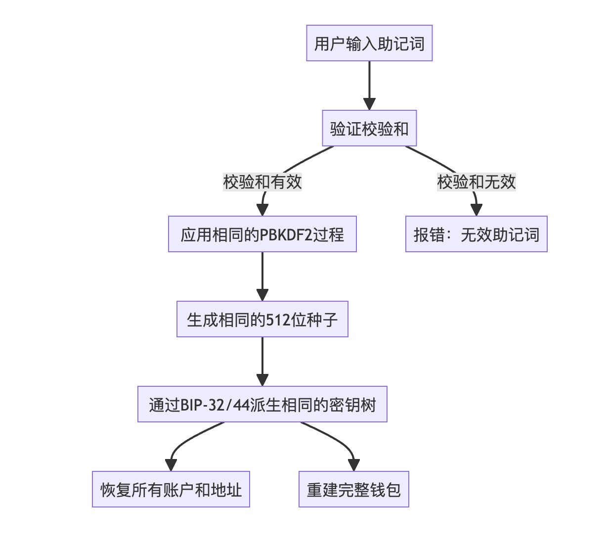 当用户需要恢复钱包时,BIP-39的价值就体现出来: