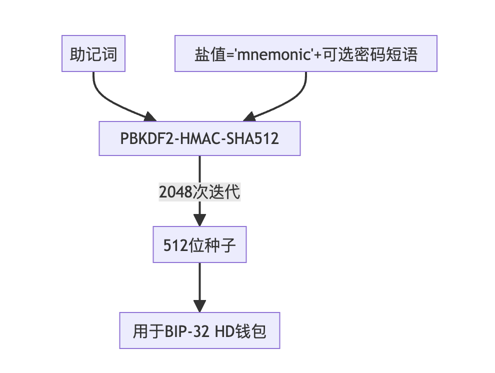 盐值:"mnemonic" + 可选密码短语