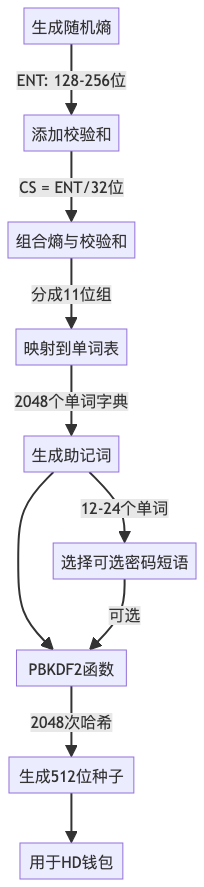 让我通过流程图来展示BIP-39的整个工作过程: