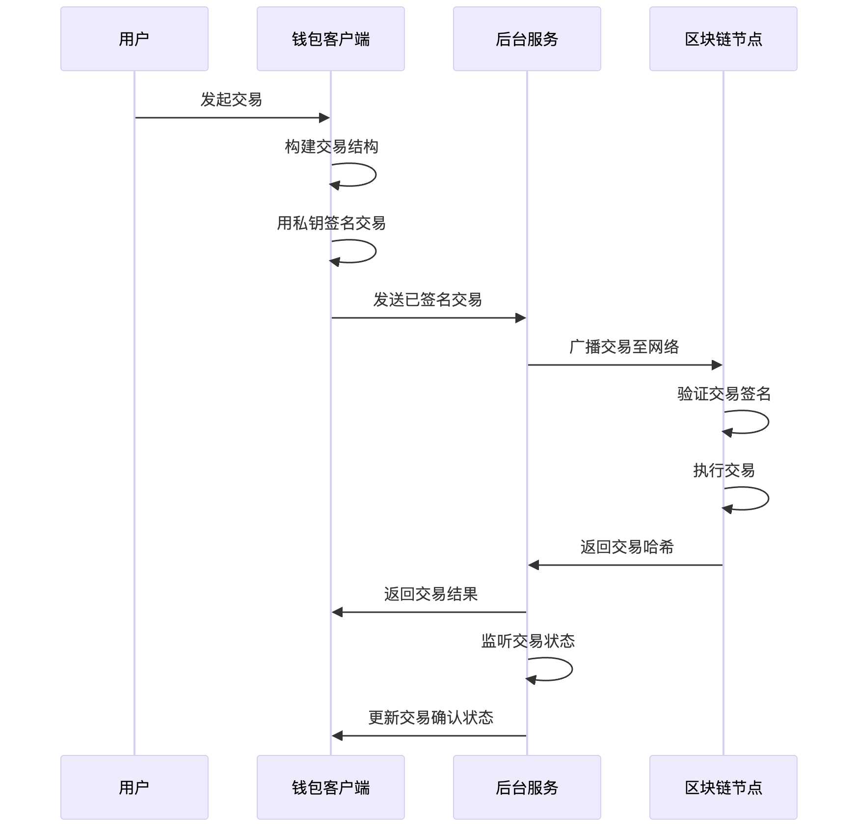 交易广播:将签名后的交易通过后台服务或直接发送至区块链节点