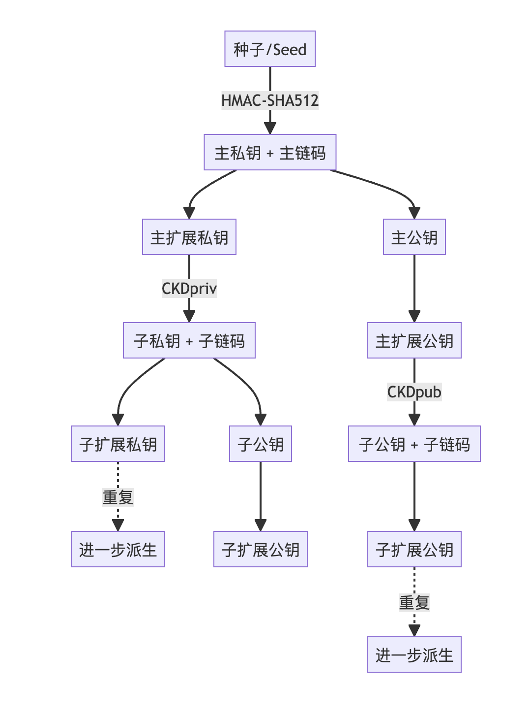 下面是BIP-32密钥派生的流程图和过程说明: