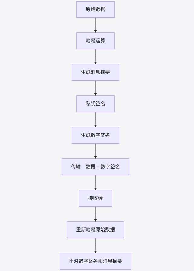 下图展示了一个典型的数字签名验证流程,帮助理解签名如何确保数据的完整性与发送者身份的真实性: