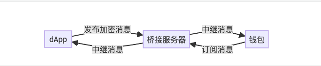 用户操作启动连接请求后,由 dApp 通过桥接服务器发布加密数据;